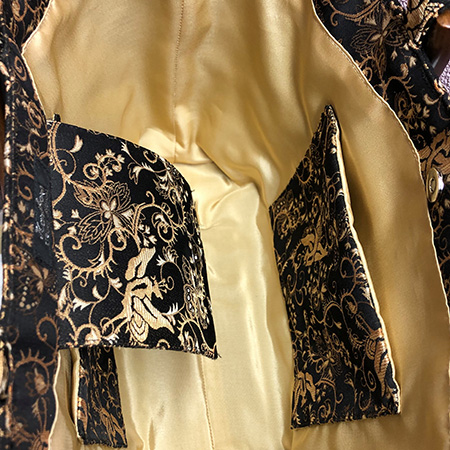 素 材 絹 (帯地、黒の紬)レーヨン(裏地)