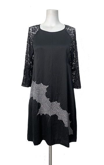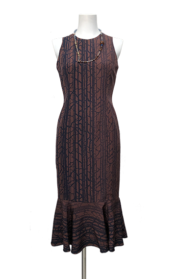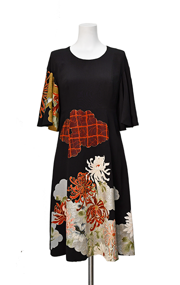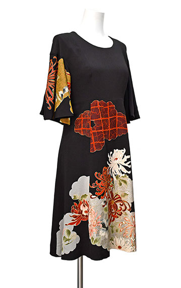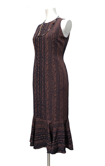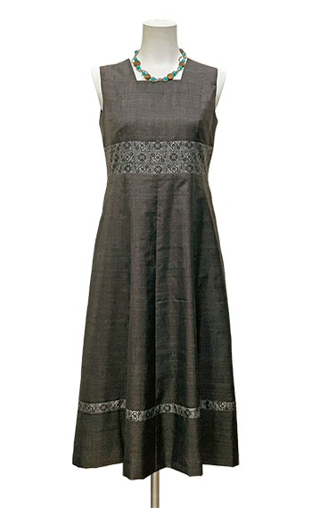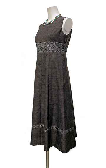 大島紬のシックなセミロングドレス