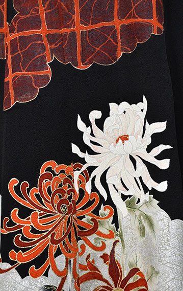 色鮮やかな菊華の模様が前身頃全面に広がる