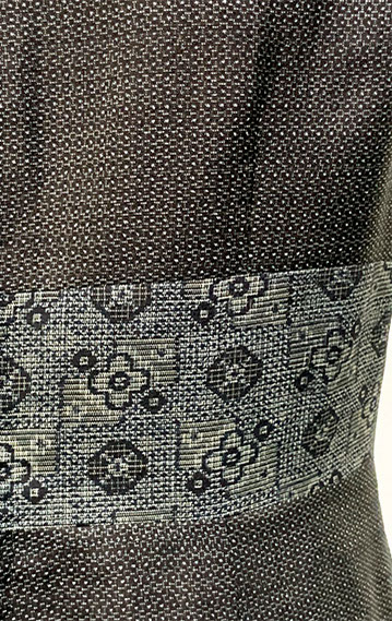 大島紬に胸の切替と裾に別布でアクセント