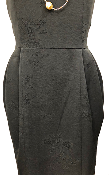 着物の様にフリルの袖が広がる黒留袖のドレス