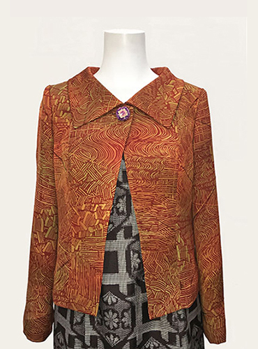 大きな襟が特徴の大島紬のジャケット