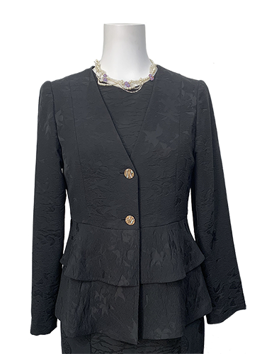 襟なしのすっきりとした黒地ジャケット