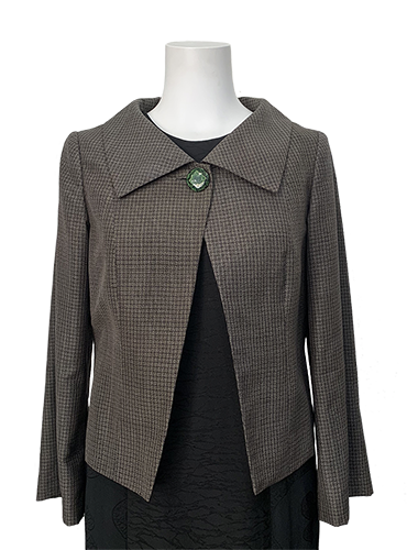 大きな襟に胸元にポイントの一つボタン